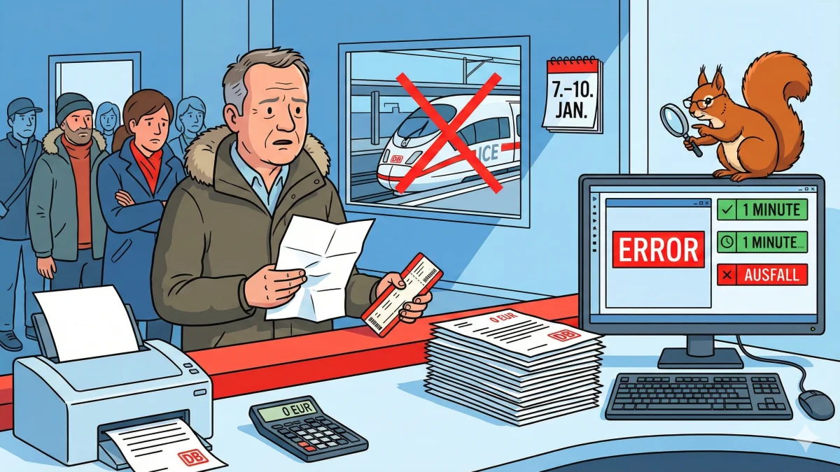 Nach dem Wintersturm „Elli" ist es bei der Deutschen Bahn zu einer Panne im Entschädigungssystem gekommen. Tausende Fahrgäste, die wegen ausgefallener Züge Anspruch auf Erstattung hatten, erhielten Ablehnungen. Grund: Ein technischer Fehler. Die DB behauptete, Züge seien „nur 1 Minute verspätet" gewesen – obwohl sie komplett ausfielen. Die Bahn entschuldigt sich und verspricht Neubearbeitung. Doch das Vertrauen ist erschüttert.