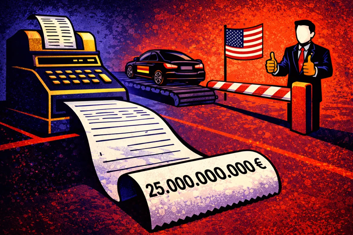 Ein Jahr Trumps Zölle – und die Rechnung für Deutschland ist konkret: 25 Milliarden Euro Schaden, Autoexporte eingebrochen, Investitionen kollabiert.