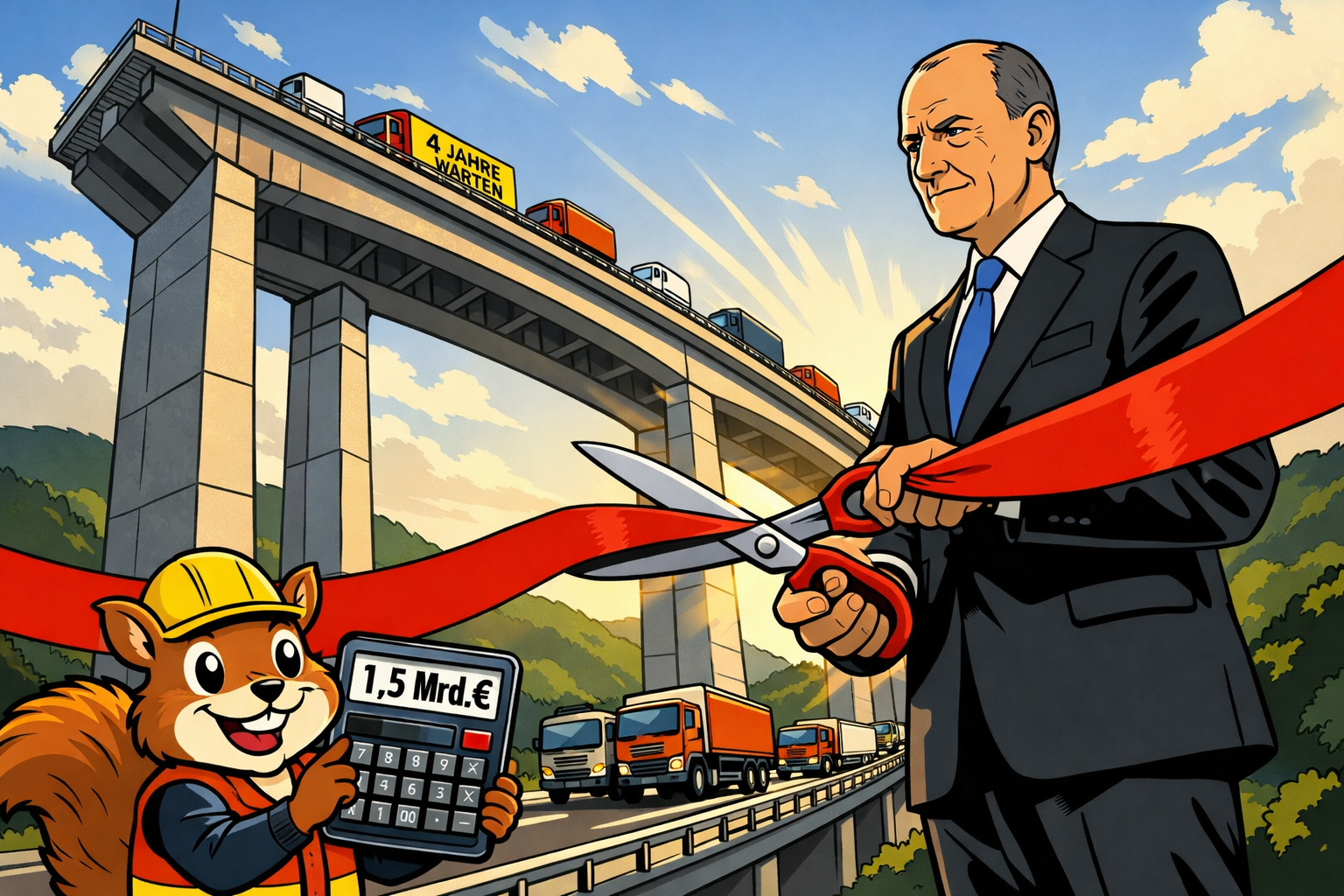 Bundeskanzler Friedrich Merz hat heute die neue Rahmedetalbrücke auf der A45 offiziell freigegeben. Nach über vier Jahren Vollsperrung können LKW und Autos endlich wieder die wichtigste Nord-Süd-Verbindung zwischen Frankfurt und Dortmund nutzen. Die alte Brücke musste im Dezember 2021 wegen akuter Einsturzgefahr gesperrt werden.
