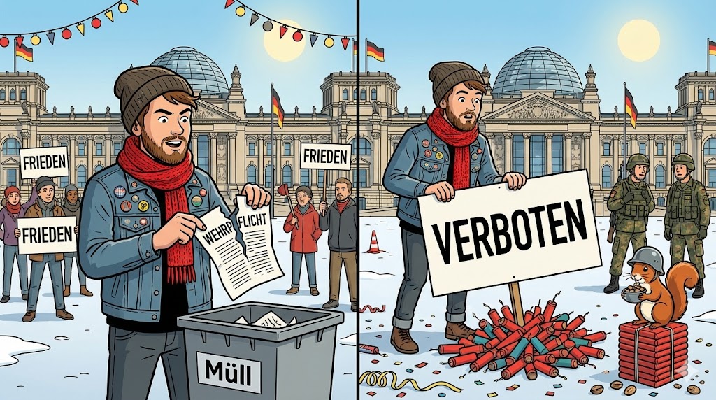 Die Fraktion Die Linke im Bundestag hat zum 1. Dezember 2025 zwei Initiativen eingebracht: Kommunen sollen privates Feuerwerk an Silvester verbieten dürfen. Und die Wehrpflicht soll komplett aus dem Grundgesetz gestrichen werden.