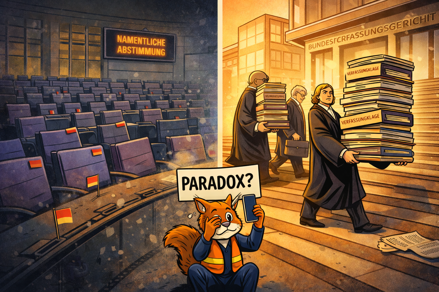 Paradoxe Strategie: Abwesend im Plenum, präsent in Karlsruhe.